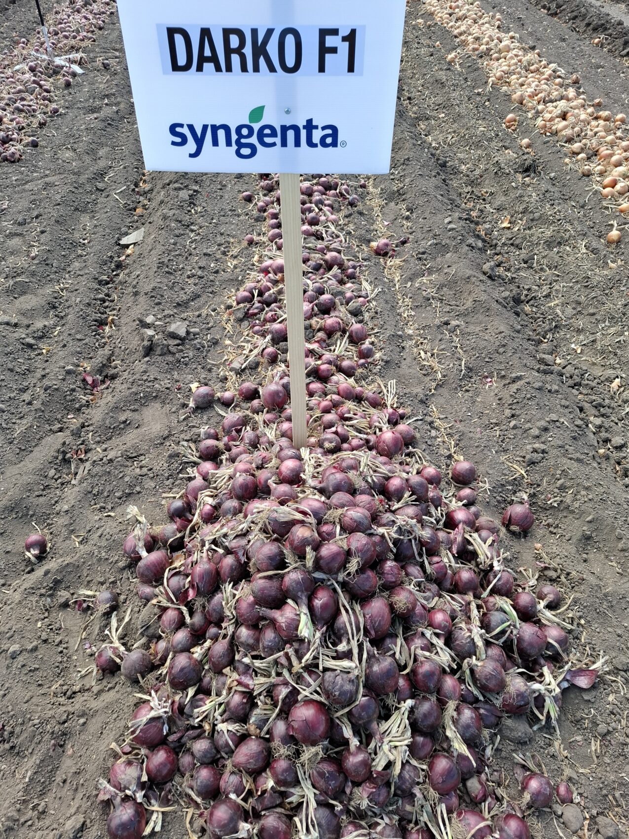 Na spotkaniu Marek Zieliński zaprezentował szereg odmian cebul z asortymentu hodowlanego firmy Syngenta typu hiszpańskiego i typu Rijnsburger, w tym o czerwonej łusce. Jak wskazał wysokim uznaniem od lat cieszy się cebula Disko F1, która jest szczególnie polecana i sprawdzona w polskich warunkach. Ma bardzo dobrze rozwinięty system korzeniowy, dzięki czemu jest odmianą niezawodną również na słabszych stanowiskach i pozwala osiągnąć satysfakcjonujące, wysokie plony. Jest odmianą wczesną i szybko tworzy kuliste zgrubienia o jasnobrązowej łusce okrywającej. Jej głównym przeznaczeniem, dzięki łatwemu obieraniu, jest zaopatrzenie przemysłu (2,7-3,0 jednostki wysiewu), ale przy gęstszym wysiewie (3,8 jednostki) świetnie sprawdza się w sprzedaży na rynek warzyw świeżych. Warto dodać, że odznacza się wysoką tolerancją na grzyby z rodzaju Fusarium. Oprócz Disko F1 cebule hiszpańskie do przetwórstwa reprezentuje też znana od lat czerwona cebula Darko F1. Jej zgrubienia są okazałe, a rośliny dość późno kończą wegetację, ale pozwalają uzyskać wysoki plon handlowy. Nadaje się też do sprzedaży w workach. W tym samym typie Syngenta ma jeszcze w ofercie odmianę ustaloną – Valenciana Tardia (Banko). Należy ją siać po 10 kwietnia w ilości 2,7-3,0 jednostki/ha. Wyróżnia się bardzo szybkim przyrostem zgrubień pod koniec okresu wegetacji. Z kolei Bosko F1 należy do odmian późnych. Ma brązową łuskę i jest polecana do obierania i sprzedaży „na worki”. Spośród nowości zaprezentowano m.in. kreację typu hiszpańskiego pod numerem SG 8423. Należy do średnio wczesnych odmian przeznaczonych do bezpośredniej sprzedaży i do obierania.