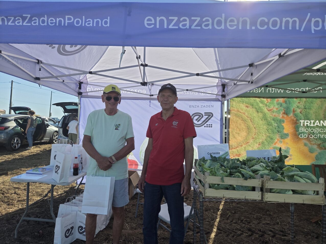Rozsada dyni w gospodarstwie Państwa Kwietniów była sadzona 21 czerwca, a przedplon stanowiły kalafiory uprawiane pod włókniną na wczesny zbiór. Pozwala to uzyskać dwa plony główne w ciągu jednego sezonu wegetacyjnego. Jest to szczególnie istotne m.in. dla odmian typu hokkaido, coraz popularniejszych i chętnie spożywanych w Polsce. Specjalista podkreślił, że sieci handlowe chcą przedłużyć możliwość oferowania tych dyń o około miesiąc, więc opóźnienie terminu sadzenia umożliwia również późniejszy zbiór, co splata się z oczekiwaniami supermarketów. W takim terminie nasadzeń problemem jest zwiększona presja ze strony szkodników, będących wektorami wirusów, które wywołują zaburzenia wybarwiania skórki dyni, co prowadzi do powstawania zielonych plam. Taki towar jest mniej atrakcyjny wizualnie i traci na jakości handlowej. Odpowiedzią firmy Enza Zaden na ten problem jest stale prowadzona hodowla dyni ukierunkowana na odmiany z odpornością na wirusy powodujące defekty jakościowe. W gospodarstwie uprawiano m.in. dynię typu Hokkaido bez odporności, Orange Summer F1, oraz nowe, już odporne na najczęściej pojawiające się w Polsce wirusy. Jedną z najlepiej rokujących na późne nasadzenia okazała się odmiana Flexi Kuri F1.
