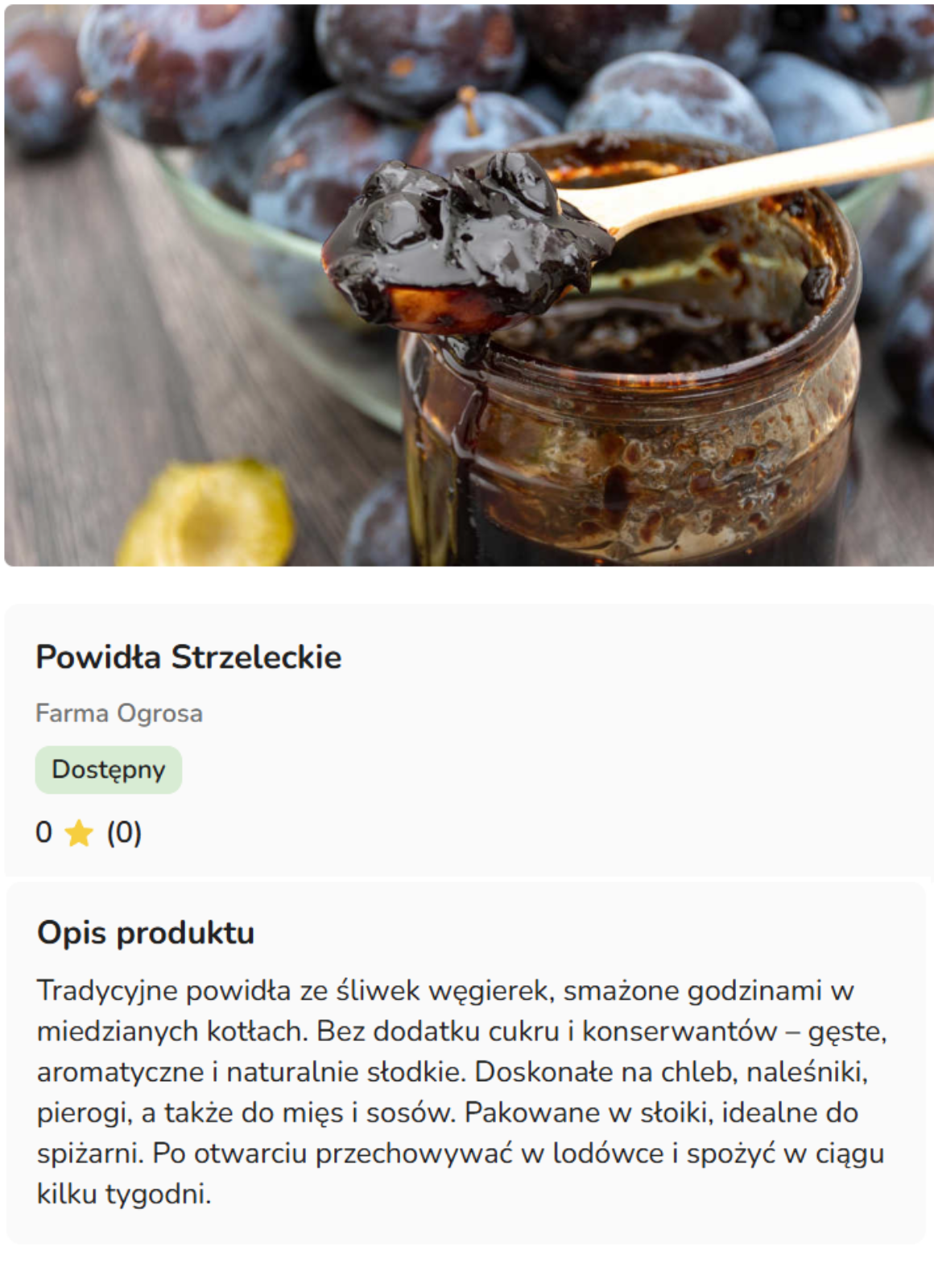 Warto też zadbać o opis samego gospodarstwa. Badania pokazują, że klienci dużo chętniej kupują produkty, co do których pochodzenia są pewne, wiedzą skąd one się wzięły, kto je wyprodukował, więc warto zadbać o to, żeby prezentować nie tylko ten produkt, ale też gospodarstwo. Warto odbiorcy pokazać, kim jest producent, gdzie działa, ale też opowiedzieć trochę o tym, co go wyróżnia, czy uprawia jakieś specjalne gatunki, odmiany. W przypadku przetwarzanych produktów warto też pokazać sposób obróbki warzyw, przetwórstwa, pakowania.