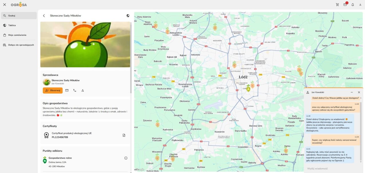 OGROSA to sposób na organizację takiej sprzedaży online. Aplikacja obsługuje część sprzedażową. Jest to gotowe rozwiązanie, bez konieczności angażowania się m.in. w media społecznościowe. Ważną kwestią jest to, że platforma jest dostosowana do potrzeb branży rolniczej, do sprzedaży żywności.