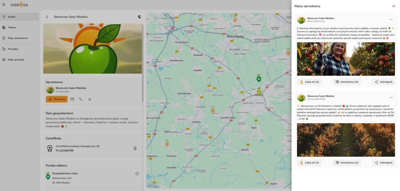 Platforma promuje sprzedających — rolników. Można opisać gospodarstwo, wstawić zdjęcia, umieścić certyfikaty ekologiczne, jeżeli rolnik takie posiada. Jest to możliwość wyróżnienia się na tle innych producentów. Można także łatwo połączyć sprzedaż internetową ze sprzedażą na żywo, np. na targu, jeżeli ktoś sprzedaje na targu.