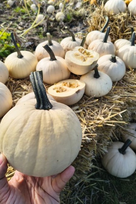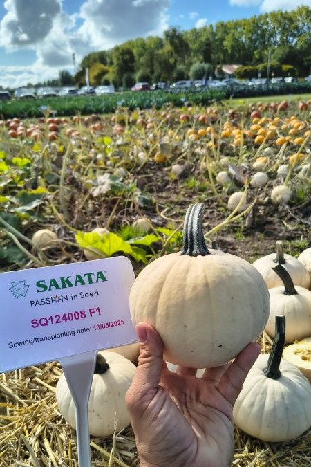 Nowością pokazów była także dynia biała pod numerem SQ124008 F1. Jest to zupełnie nowa propozycja kolorystyczna – dynia kulinarna o białej skórce i kremowym miąższu. Jest idealna do przetwórstwa i dekoracji. Jak uważa Hubert Tabor, jest to lider wyrównania, o świetnej trwałości i plonowaniu.